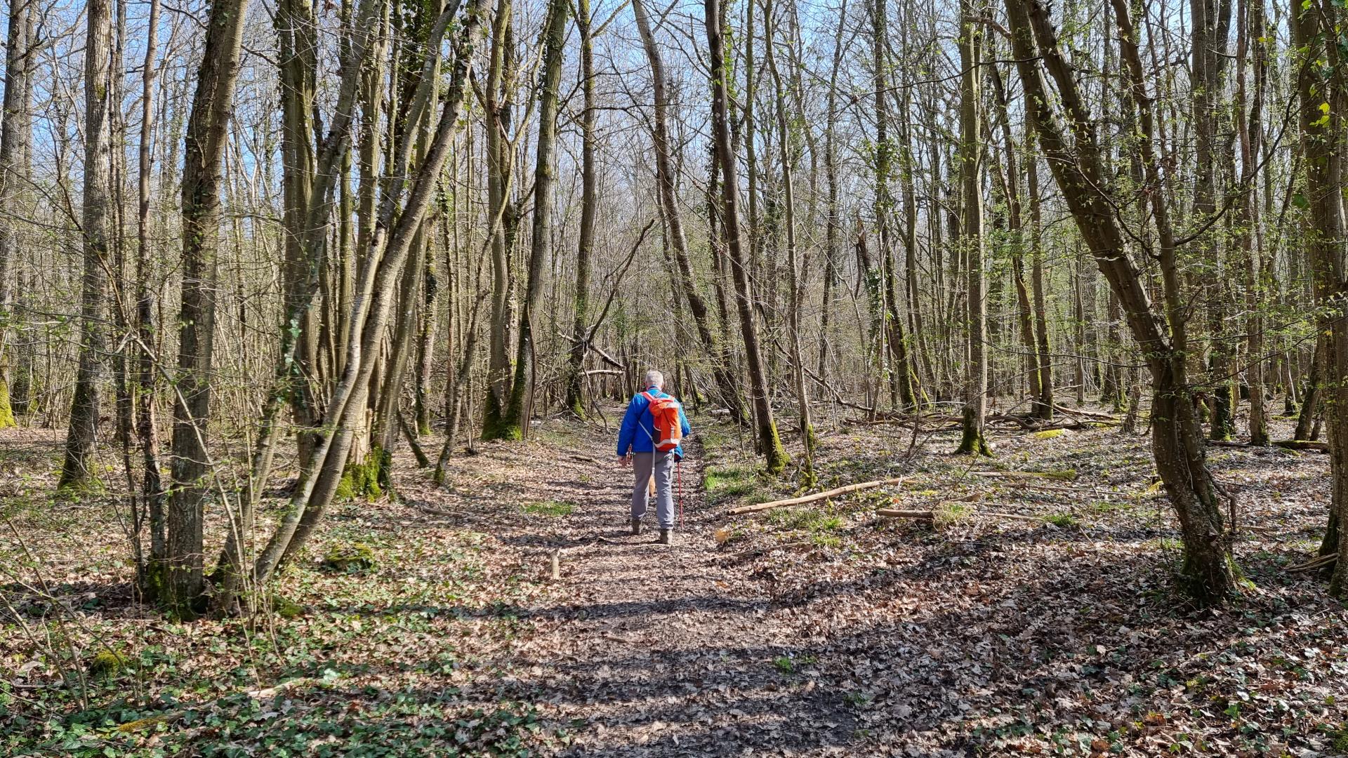 Michèle, Pierre, Jean-Marc pour cette marche au départ d'Orgerus, jolie commune un peu hostile, faite sous un beau soleil et une nature qui prend ses couleurs de printemps.