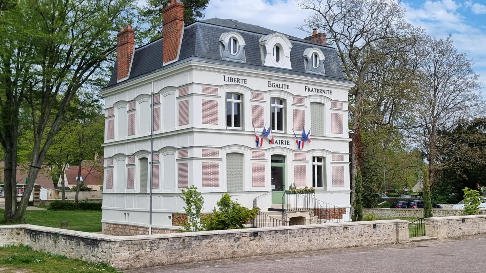 Départ de la jolie mairie d'Oinville au pied du lavoir, duquel desend une charmante cascade. Il n'y a pas à dire, l'hôtel de ville et son environnement immédiat ont fière allure.